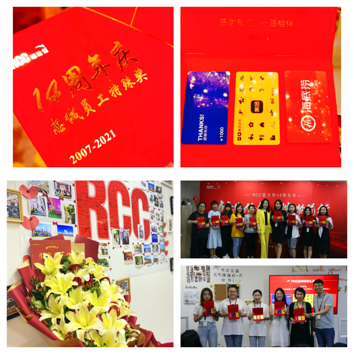 ? ? ? ? ? 只要是3年及以上的RCC老員工,每年公司周年慶都有一份特殊獎(jiǎng)。今年的特殊獎(jiǎng)依舊裝載了公司滿滿的心意,美團(tuán)卡、京東卡、海底撈卡從衣、食、住、行都照顧到了!