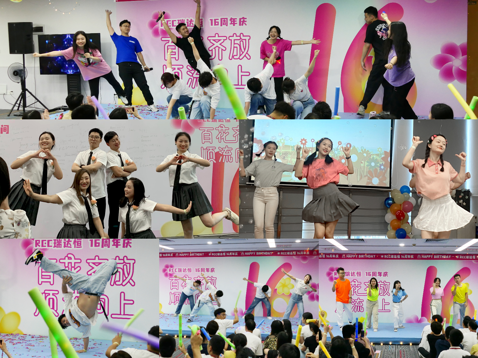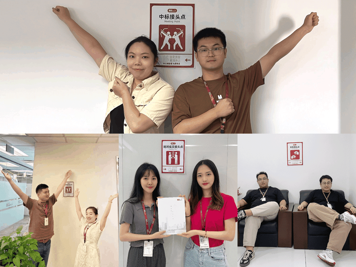 ? ? ? 辦公室內(nèi)的搭子接頭點成為了RCC人的熱門打卡地,不同部門的伙伴一起花式復(fù)刻海報姿勢,留下16周年限定合照。